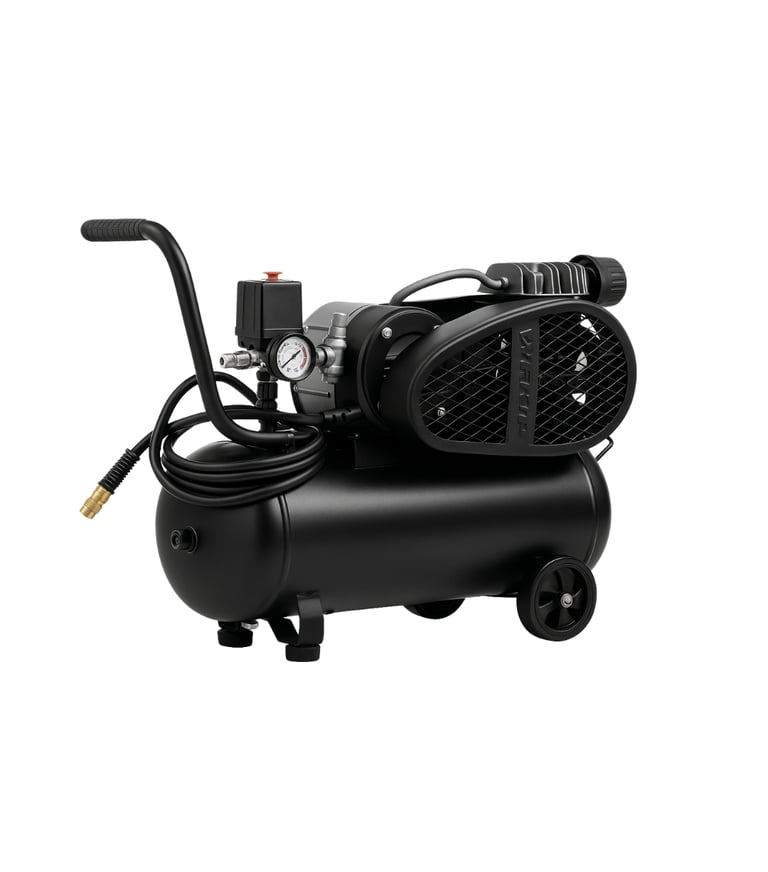Compresor de aire portátil, compacto y resistente, ideal para talleres y obras. Ofrece presión confiable para herramientas neumáticas y trabajos de inflado con alto rendimiento y facilidad de uso.